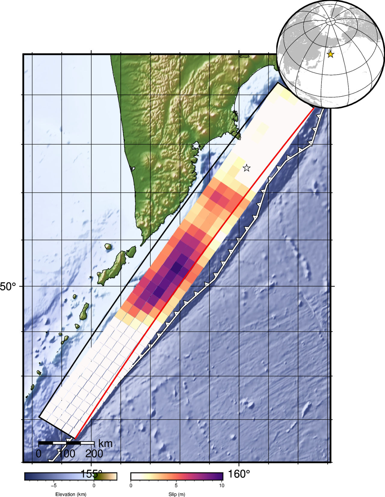 震中位置: 52.498°N 160.264°E