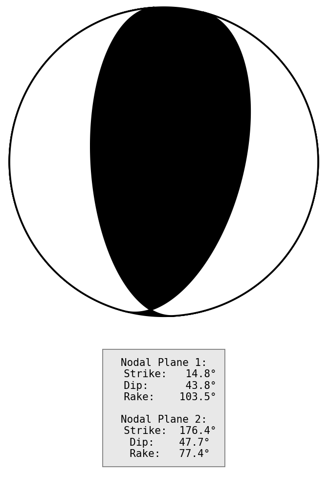 节面1: 走向14.8度 倾角43.8度 滑动角103.5度