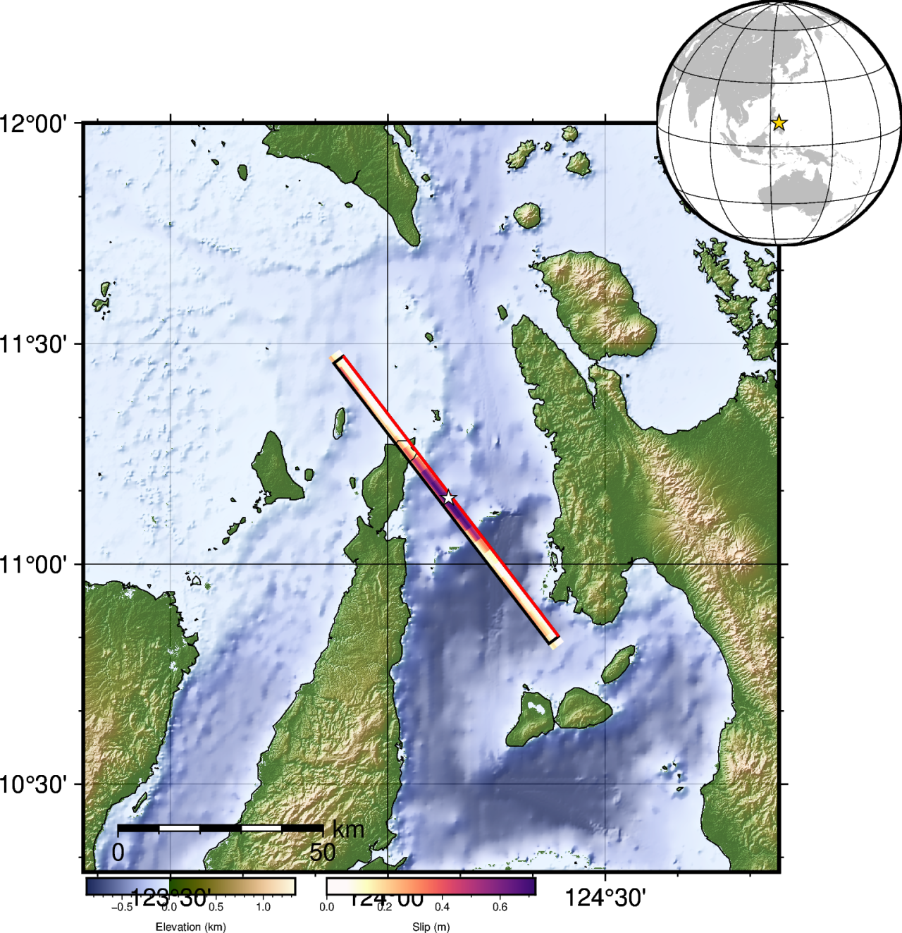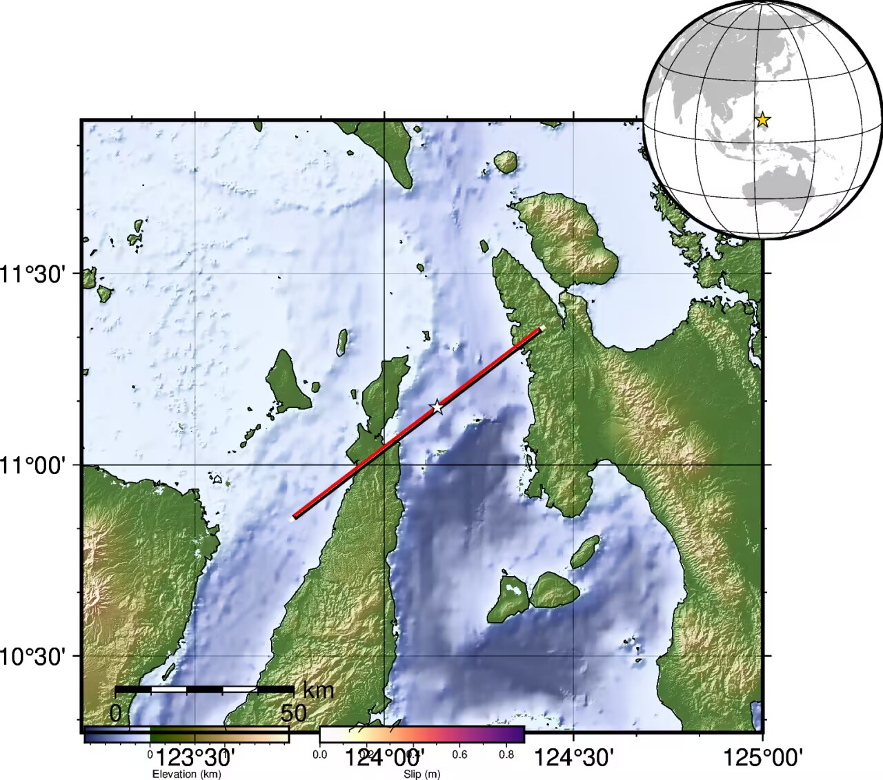 震中位置: 11.12°N 124.06°E(GCMT) 11.2764°N 124.0642°E(FSSN)