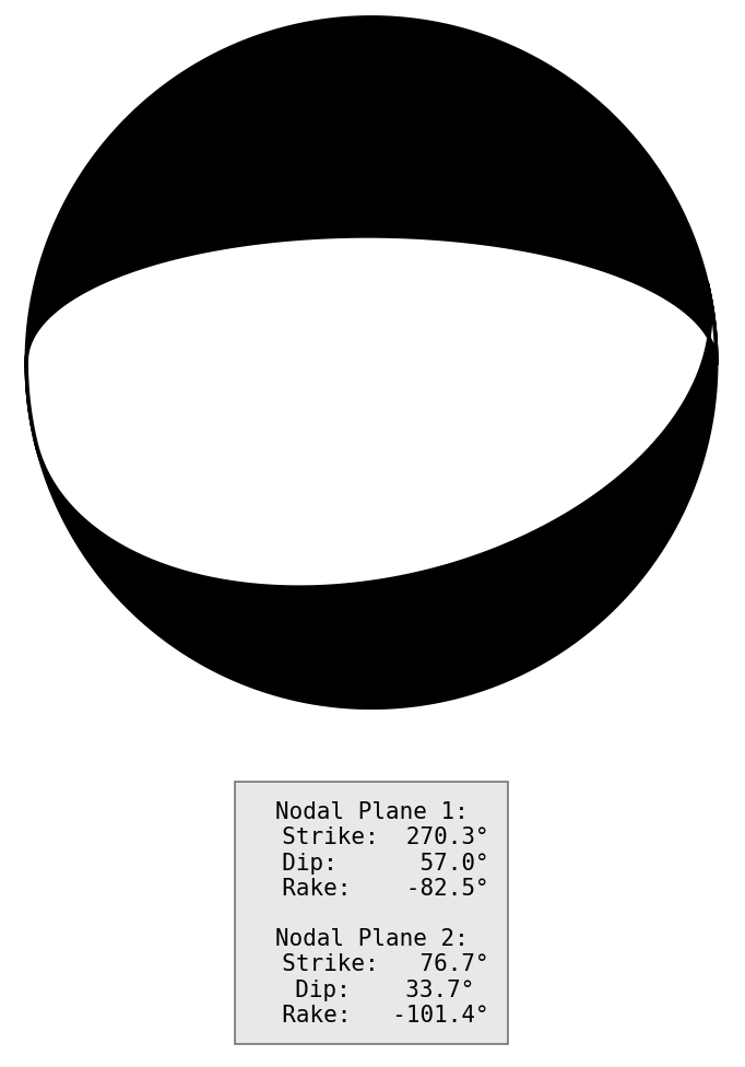 节面1: 走向270.3度 倾角57.0度 滑动角-82.5度