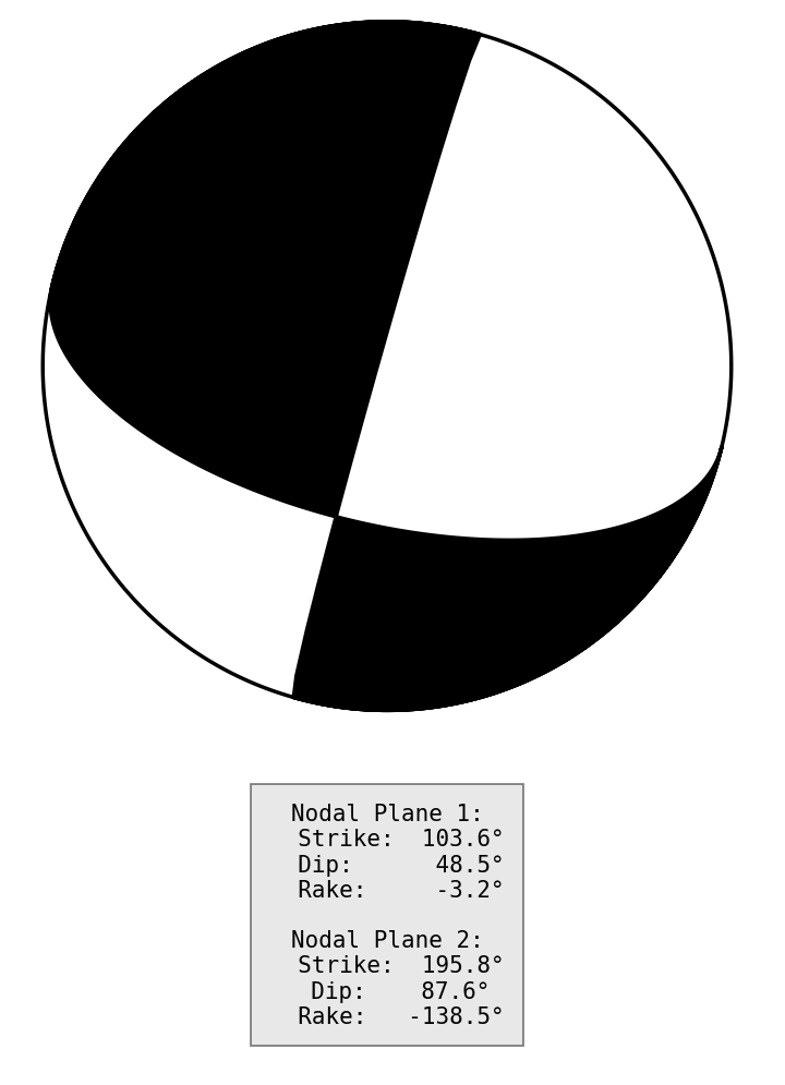节面1: 走向103.6度 倾角48.5度 滑动角-3.2度