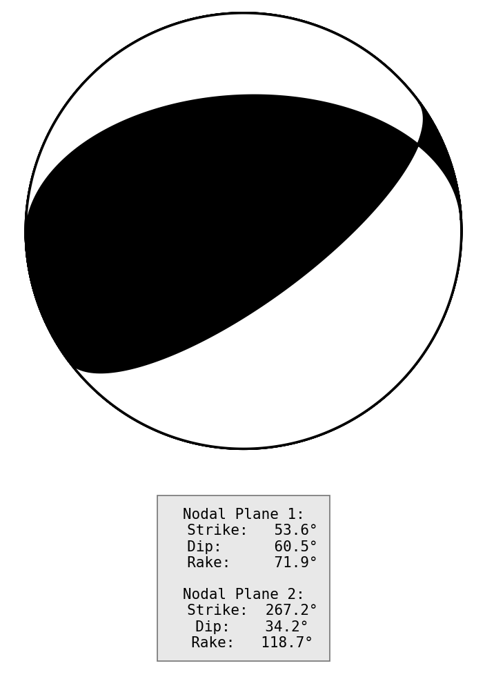 节面1: 走向53.6度 倾角60.5度 滑动角71.9度