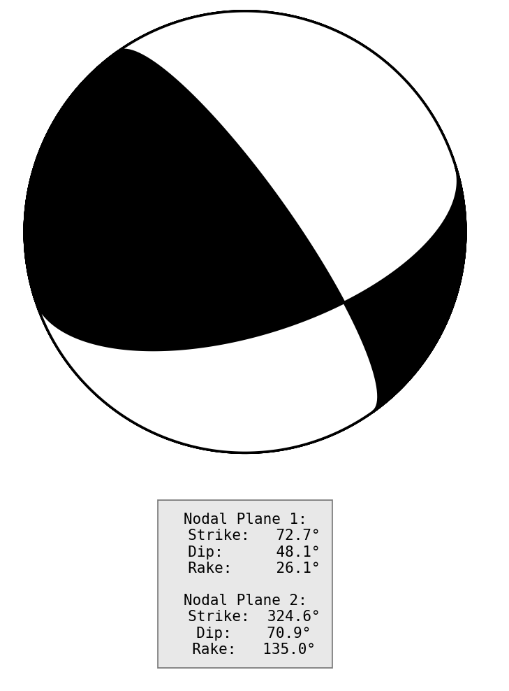 节面1: 走向72.7度 倾角48.1度 滑动角26.1度