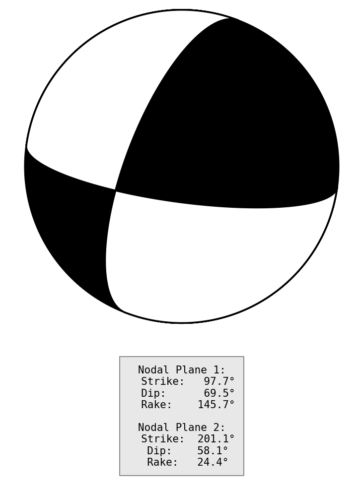 节面1: 走向97.7度 倾角69.5度 滑动角145.7度