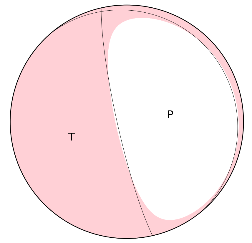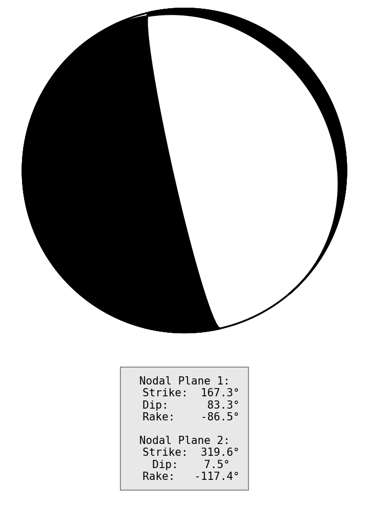 节面1: 走向167.3度 倾角83.3度 滑动角-86.5度