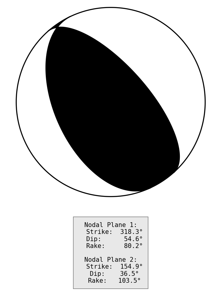 节面2: 走向154.9度 倾角36.5度 滑动角103.5度