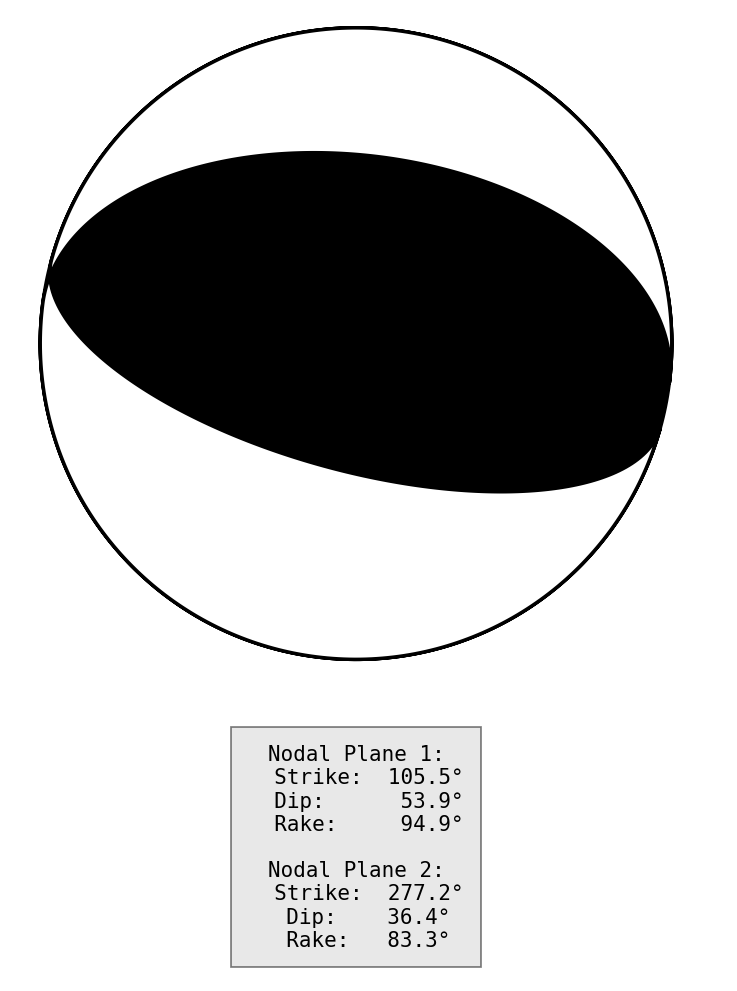 节面1: 走向105.5度 倾角53.9度 滑动角94.9度