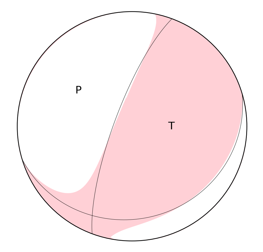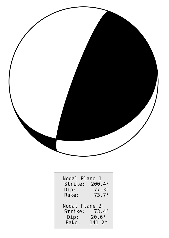 节面2: 走向73.4度 倾角20.6度 滑动角141.2度