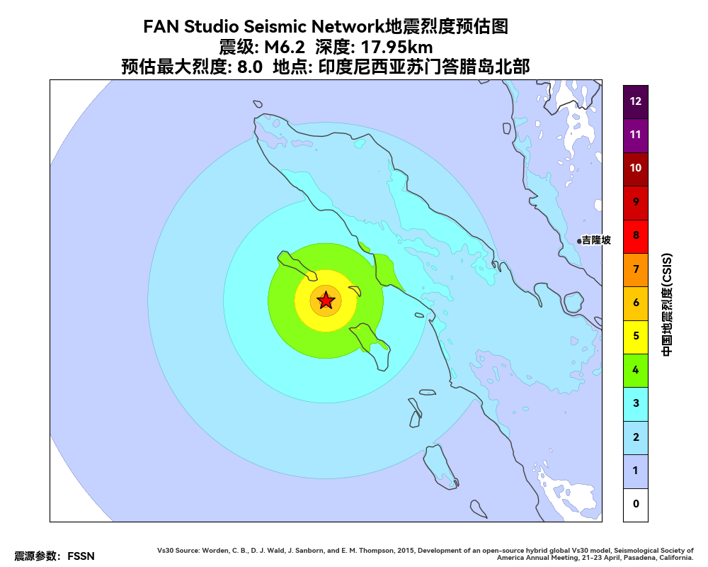 震中位置: 1.9469°N 96.6482°E