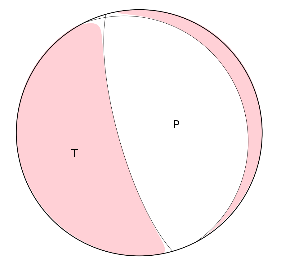 节面1: 走向164.3度 倾角76.1度 滑动角-87.3度