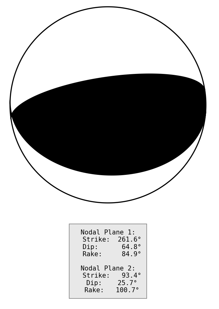 节面1: 走向261.6度 倾角64.8度 滑动角84.9度