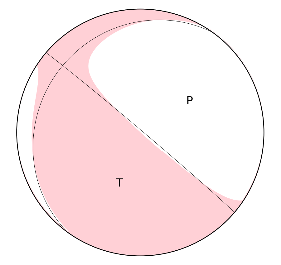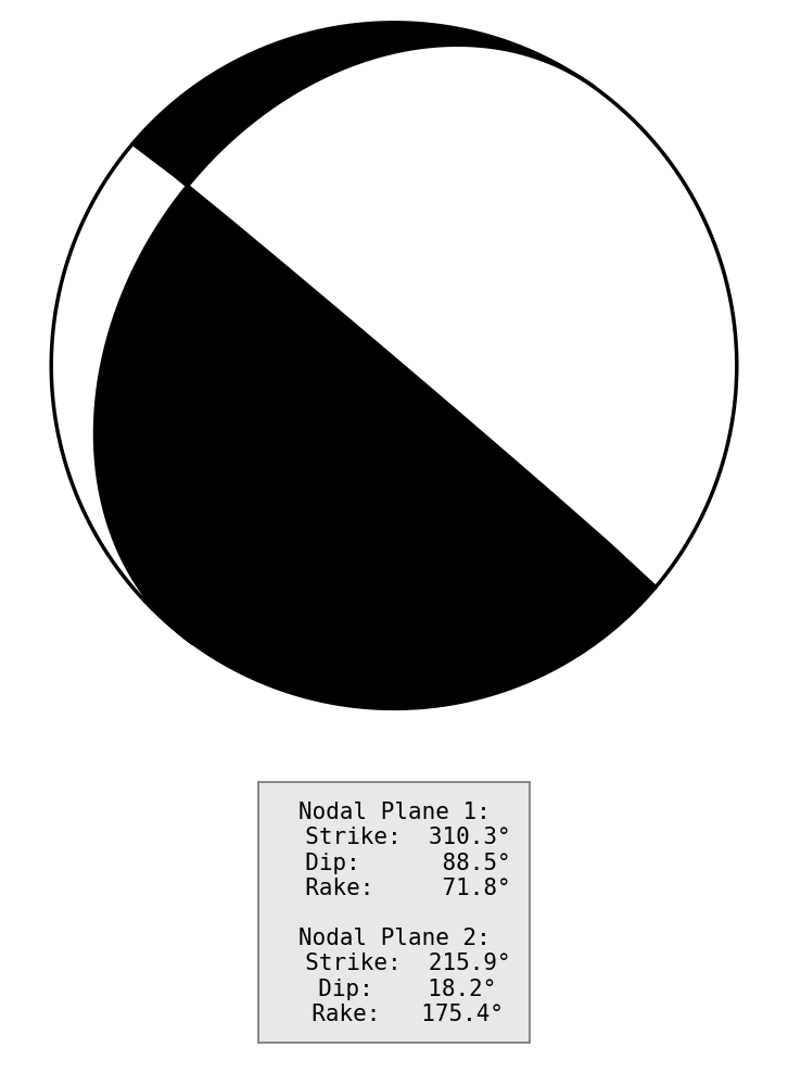 节面2: 走向215.9度 倾角18.2度 滑动角175.4度